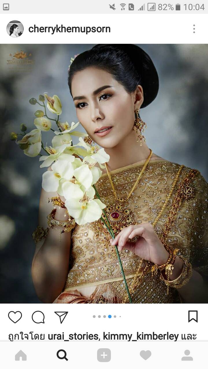 It's really beautiful for the heroine cherry in the set of Thai costumes by cherry.